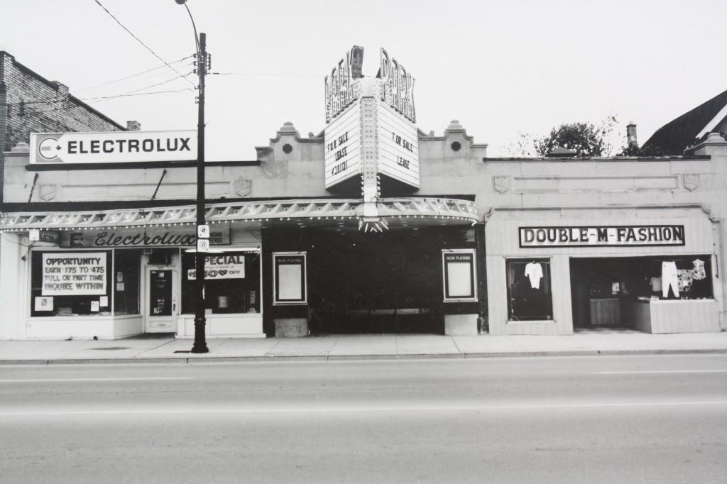 As movies became more popular, the theatre reopened. In 1951, it underwent renovations and was rebranded The Park. Here it is in 1957; you can see the marquee on the left (North) side of Dundas St.: