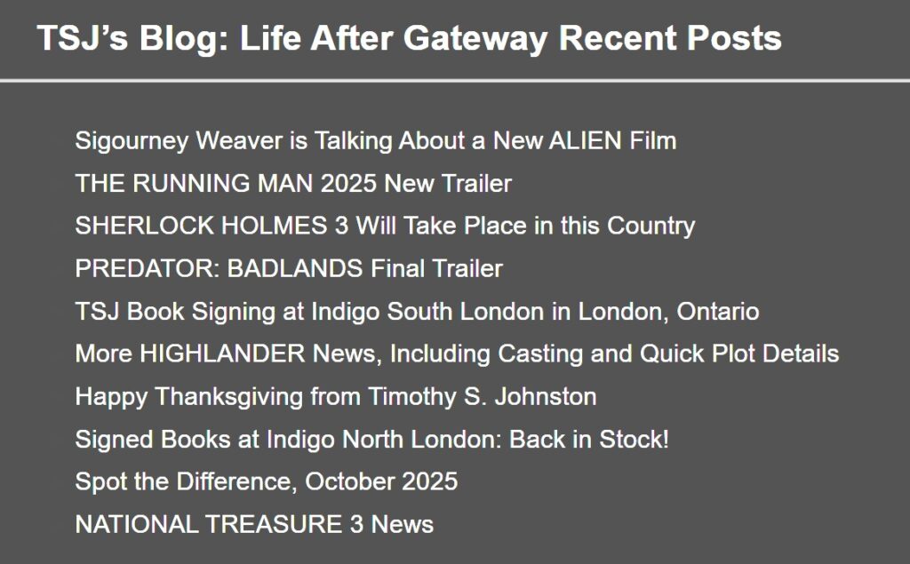 Follow TSJ’s Blog Life After Gateway, featuring one carefully curated news item from the world of Science Fiction, Mystery, Thriller, Horror, and Suspense each day. Enter your email in the “Subscribe to Blog via Email” widget on the right.
