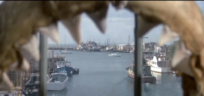 - The name “Jaws” has now become iconic in popular culture. The ‘jaws’ are best demonstrated in this scene, which was a clever Spielbergian shot, and foreshadowed that final tragic act at sea: