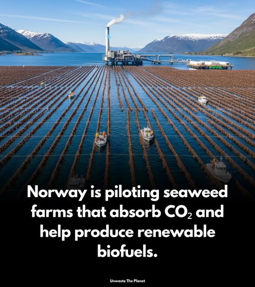 The Norwegian company Aker BP is piloting this project, which has already had its first harvest. The idea is to grow kelp, which removes Carbon Dioxide from the atmosphere, and then use the kelp to produce “biochar,” a soil-additive which increases water retention, holds the carbon in the soil for long periods, and is beneficial for soil organisms. The company estimates that one square kilometre of kelp farm can trap 3,000 tons of CO2 annually. The kelp can also be used for food, plastics, and animal food.