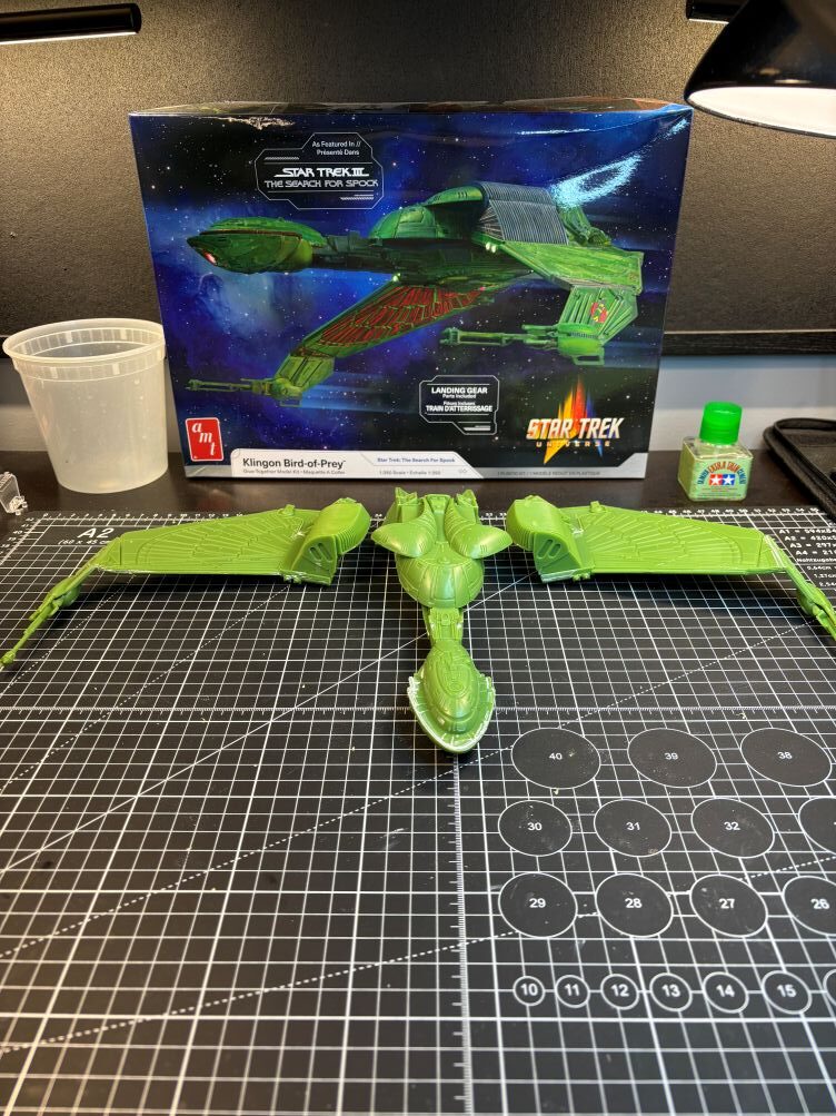 If you recall, there were four choices: The Vulcan shuttle Surak from TMP, Enterprise-C, the Allies and Adversaries set, and the Klingon Bird-of-Prey. All are AMT / Round2 model kits. The Bird-of-Prey won by a comfortable margin, and here is a quick update for you on the project.