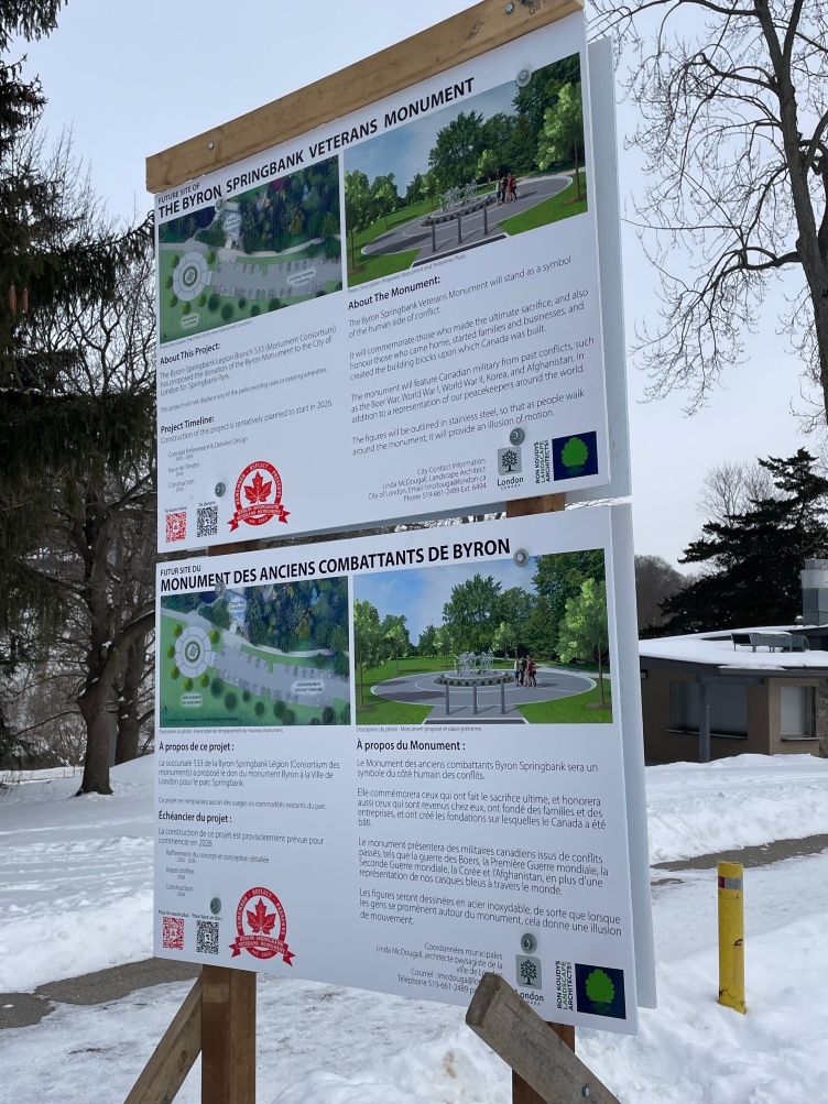 “The Byron Springbank Veterans Monument will stand as a symbol of the human side of conflict. It not only commemorates those who made the ultimate sacrifice, but it also honours those who came home, started families and businesses, and created the building blocks upon which Canada was built. It will be a place where people can gather to learn about our history and honour the lives of those who served.