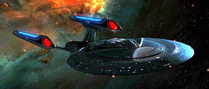You may recall that NCC 1701-D met its demise in Star Trek: Generations. The ship was redesigned for First Contact, and it is simply beautiful. It’s sleek, powerful, and more warlike than the television version. First Contact really highlighted the ship, especially that deflector dish and the engineering/warp core area. There were so many conflicts with the Borg in so many areas of the ship, in fact, that Enterprise itself became a character in the movie.