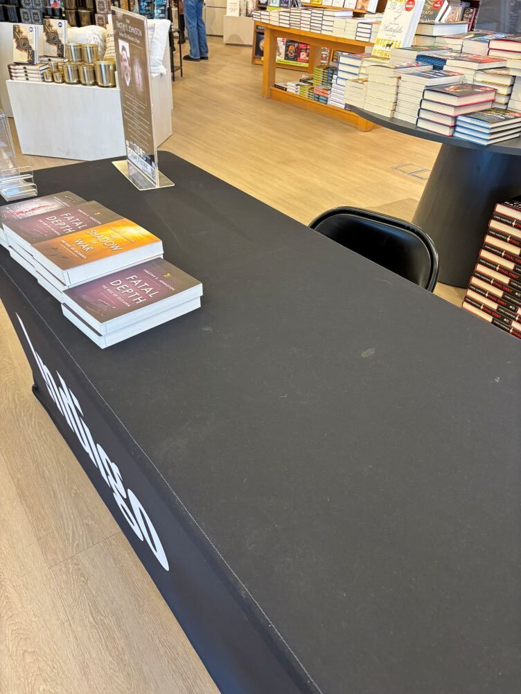 After the signing. I left a few copies (pictured) signed and on the bookshelf.