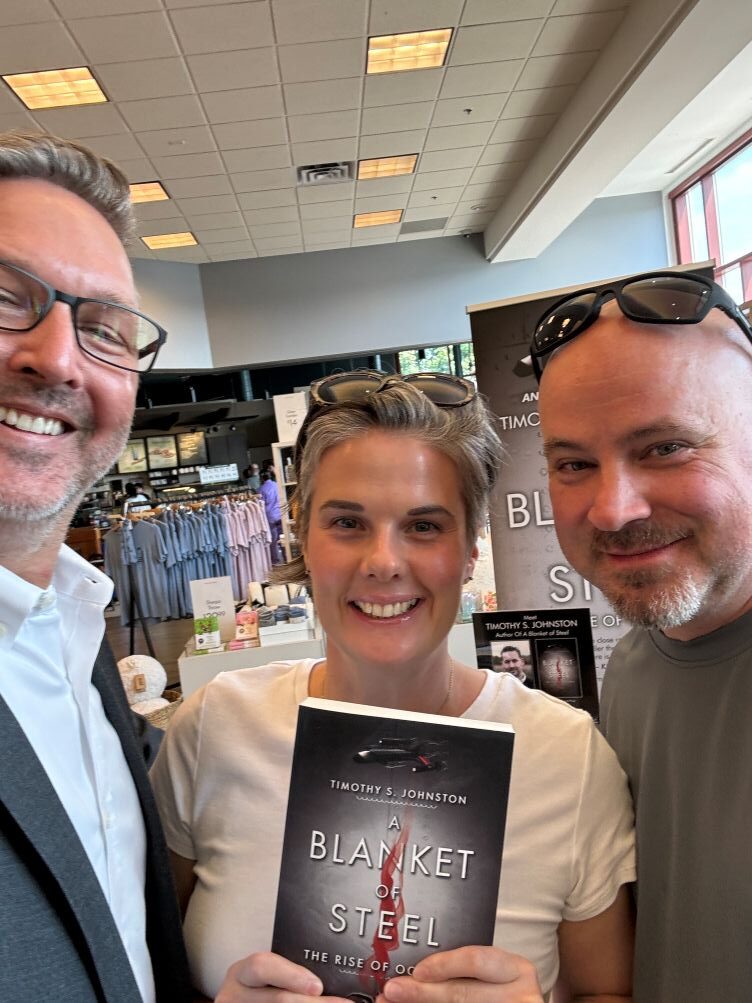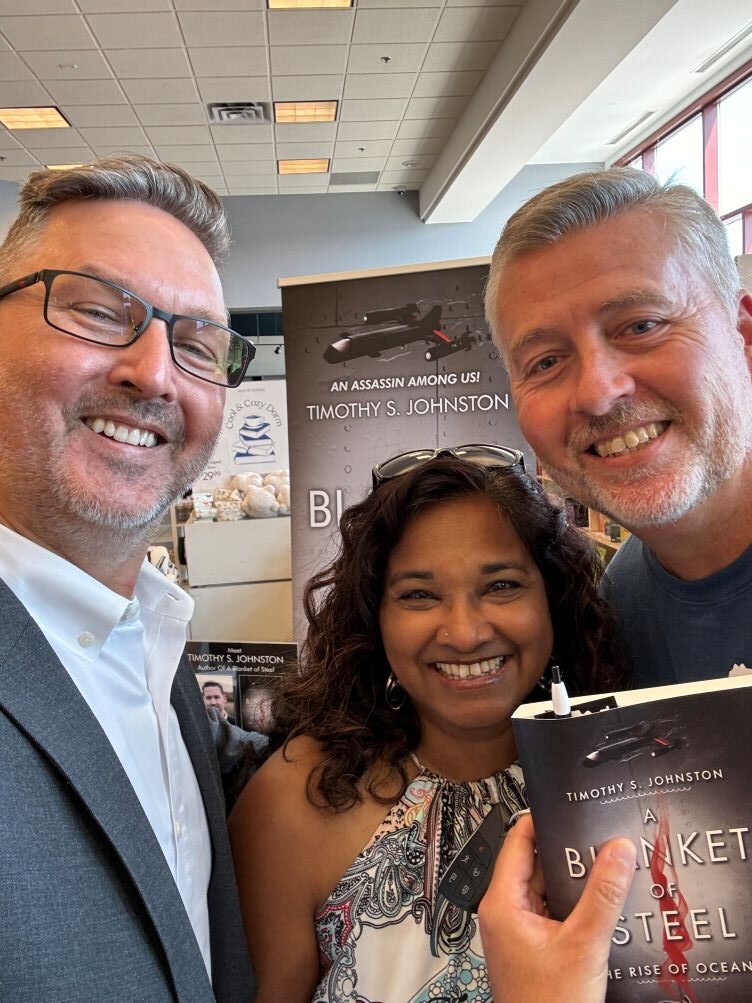 I also met some new readers: Doug, Lexi, Kendra, Jim, Ramona, Bill, and more. One of the more heartwarming stories was a reader who bought two copies: one for her and one for her grandfather. The two like to read the same books and then meet to talk about the book. I just loved that story. Another new reader was extremely fascinating: a graduate with an Engineering Physics degree who is now in a Medical Physics (Imaging etc.) program at the local university medical school and hospital. I can’t wait to hear what these new readers think of A Blanket of Steel.