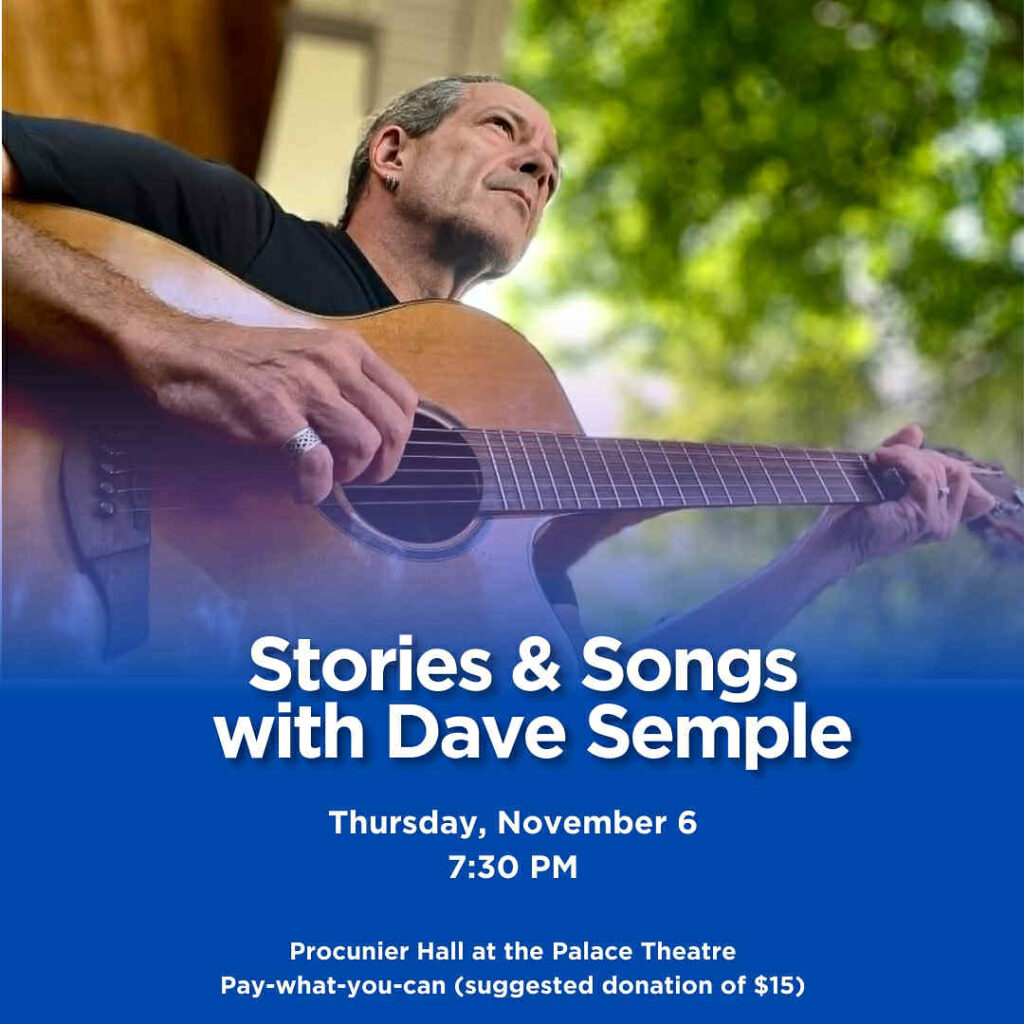 The Palace Theatre in London, Ontario is Featuring Stories & Songs with Dave Semple this Thursday, 6 November 2025