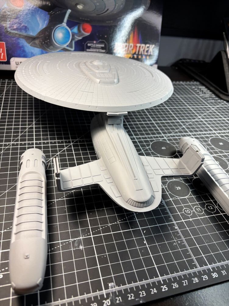 If you’re not already aware, I recently returned to the scale-model hobby after a forty-year break. It has been an incredible experience, but it also meant I had a lot to learn. I’ve made many mistakes, had to correct errors, and I’ve had to learn on my own how to construct, glue, prime, sand, paint, and complete the Star Trek models.